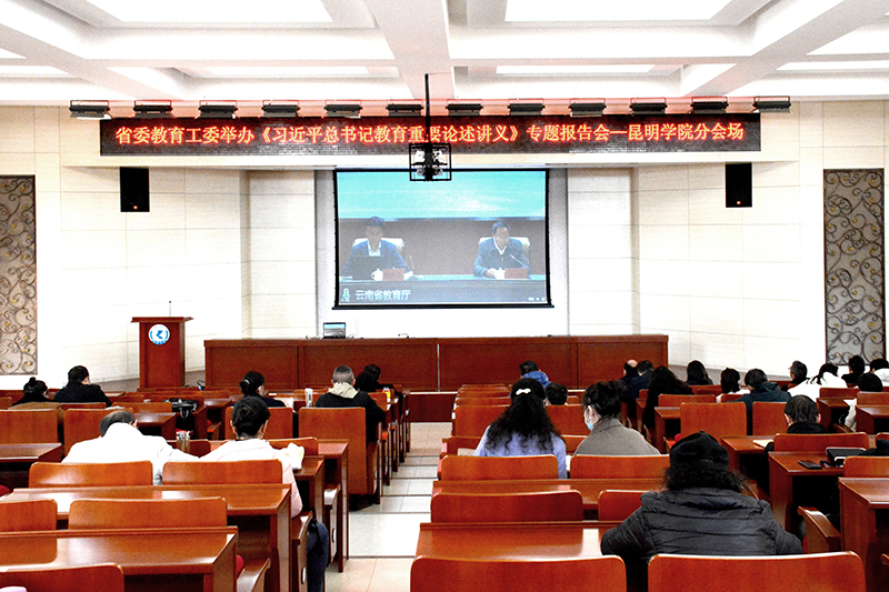 报告会以线上、线下方式举行。省委教育工委、省教育厅全体干部职工,在昆高校的党委书记、校长共计300余人参加主会场报告会,全省教育系统12800余人分别在344个分会场参加学习。德赢VWIN官方网站校领导,有关部门负责人,各二级学院、附属经开学校、附属幼儿园负责人,全体思政课教师在学校办公楼D区报告厅分会场,以观看视频直播方式参加学习。