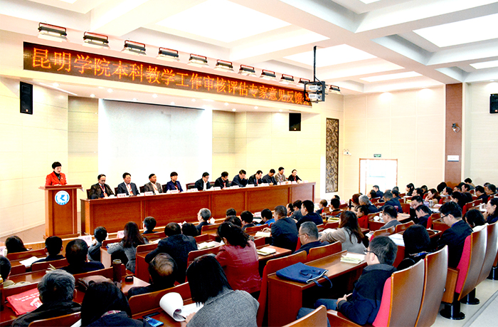 胡宝国副市长希望,学校以审核评估为契机,充分吸收、借鉴专家提出的意见建议,以问题为导向,抓师资队伍,抓教学提质量,抓科研出成果,抓师德出形象,抓服务出内涵,抓管理上水平,将以评促建,以评促改,以评促广,评建结合,重在建设的审核评估方针落到实处,继续围绕云南省三个定位和昆明市区域性中心城市的目标定位,努力在人才培养、智力支持等方面继续发挥积极作用,进一步履行好地方院校的责任和使命,全力向全国知名、特色鲜明的综合性应用型高水平地方大学迈进。 黎素梅校长表态发言强调,一是扎实整改,全力做好以评促建工作;二是强化特色,着力提升核心竞争力;三是深化改革,助力提高本科办学水平;四是齐心聚力奋力铸就新辉煌。进入新时代,面对新挑战、新任务和新要求,我们必将继续保持团结干事,开拓创新,奋发有为,争创一流的进取精神。心往一处想,劲往一处使,增强忧患意识,抓住机遇、用好优势,以更名大学为动力,以建设高水平应用大学为目标,坚持以本为本,推进四个回归,强化内涵建设,坚持特色发展,全力提升本科教育水平和办学质量。