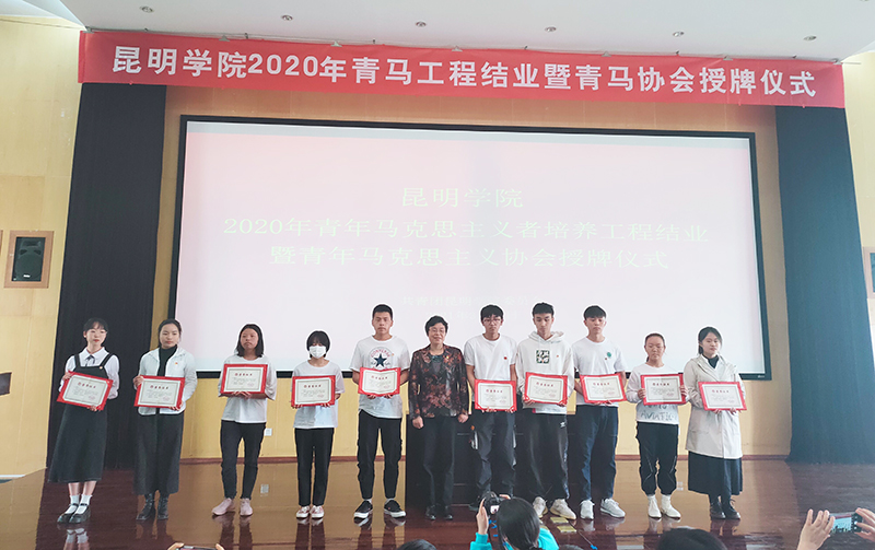 会上,熊晶副书记为校级青马班优秀学员代表颁奖,为学生社团“青年马克思主义者协会”授牌。