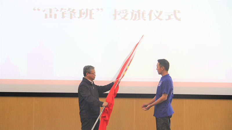 4月2日,学校开展“弘扬雷锋精神·共建和谐校园”专题活动,为新一届“雷锋班”授旗。学校党委副书记王文成出席会议并讲话,宣传部、校团委负责人,建筑工程学院党政负责人,专职组织员、团委书记、辅导员,2018级雷锋班班主任及全体学生参加授旗仪式。