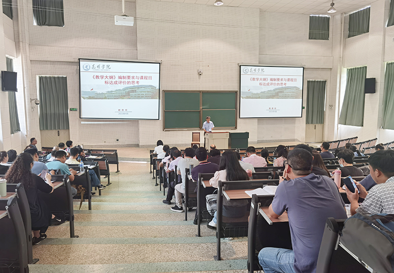 教务处处长解永刚作了题为 “《教学大纲》编制要求与课程目标达成评价的思考”的讲座,就修订课程《教学大纲》的重要性、如何修订《教学大纲》、课程大纲与课程目标达成之间的关系等问题作了详细地讲解。