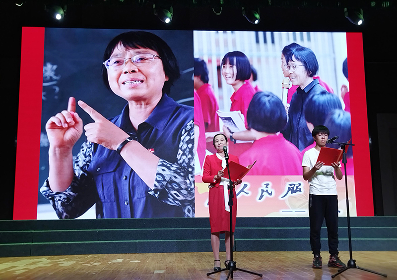 学院班子带来配乐诗朗诵《中国共产党百年华诞赋》,同学们演唱了歌曲《红军阿哥慢慢走》,师生共同朗诵了诗歌《为人民服务》,宣讲团成员带领大家学习了《传承谱写时代最强音的精神力量》《让实事求是照耀前行的路》。大会在全体师生同唱《唱支山歌给党听》《没有共产党就没有新中国》落下帷幕。师生们以主题歌舞、诗朗诵、大合唱等多种形式的文艺节目,热情讴歌中国共产党成立100周年来取得的辉煌功绩。