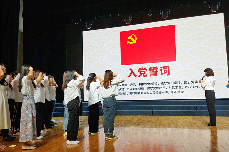 会议由重温入党誓词、优秀党员表彰、主题文艺演出及颁奖仪式等部分组成。会议在庄严的国歌声中拉开帷幕,首先举行新党员入党宣誓和老党员重温入党誓词,各位党员同志在李莉同志的领誓下,大家举起右手,“我志愿加入中国共产党,拥护党的纲领……”铮铮誓词,声音洪亮,氛围严肃。