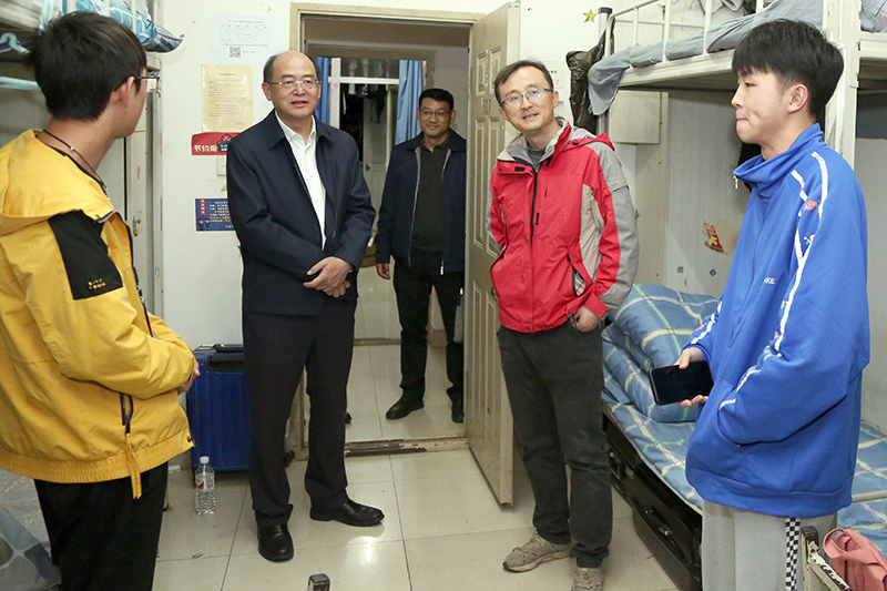 金幼和走访了学生宿舍,查看了查寝记录,详细了解各二级学院夜间值班情况。金幼和要求,要进一步严格落实夜间值班制度,要求学工干部、辅导员、班主任等以高度的责任心,经常走进宿舍、走近同学,用心用情做好夜间查寝、思想教育等教育管理工作,全程全时开展育人服务和人文关怀,及时发现问题,有序处理问题,妥善解决问题。