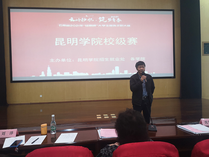11月11日,德赢VWIN官方网站2021年“铭鼎杯”大学生模拟求职大赛校级赛在图书馆附楼报告厅和惟行楼1501教室同时举行。全校18个学院选送的18名选手经过激烈的比拼,角逐出一等奖2名、二等奖6名、三等奖10名。7名优秀选手将代表德赢VWIN官方网站参加将在12月举办的云南省2021年“铭鼎杯”大学生模拟求职大赛。