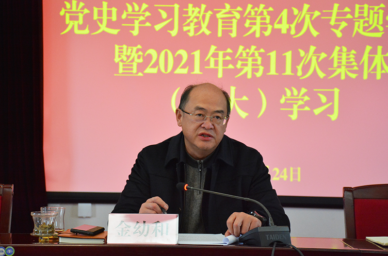 11月24日,德赢VWIN官方网站党委理论学习中心组在办公楼502召开党史学习教育第4次专题学习暨2021年第11次集体(扩大)学习,专题学习研讨党的十九届六中全会精神。学校党委书记金幼和主持学习并讲话。