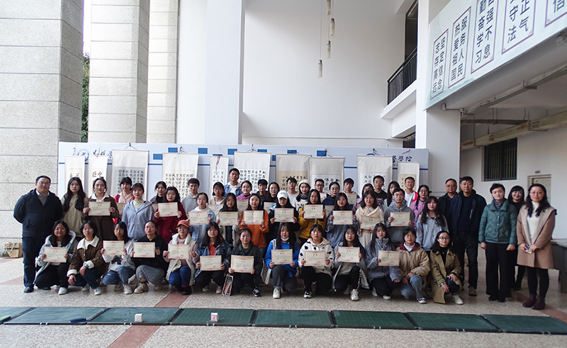德赢VWIN官方网站第九届书法大赛获共收到全校11个院系书法作品1590份,其中粉笔作品325份,毛笔作品205份,钢笔作品1060份。为保证书法作品评选的公正公平,特聘请云南省著名书法家姜斌先生、资永生先生、孙志明先生组成评委会,于10月19日进行评选,评委们采用淘汰制和选拔制相互结合、认真筛选、仔细甄别、多番比较,最终评选出优秀作品187份,其中毛笔作品67份,钢笔作品60份,粉笔作品60份。各类作品一等奖各5名,二等奖各10名,三等奖各15名,颁发奖状和奖金;优秀奖各30名,颁发奖状。根据提交作品数量及获奖作品情况,人文学院、数学学院和学前与特殊教育学院获得优秀组织奖。