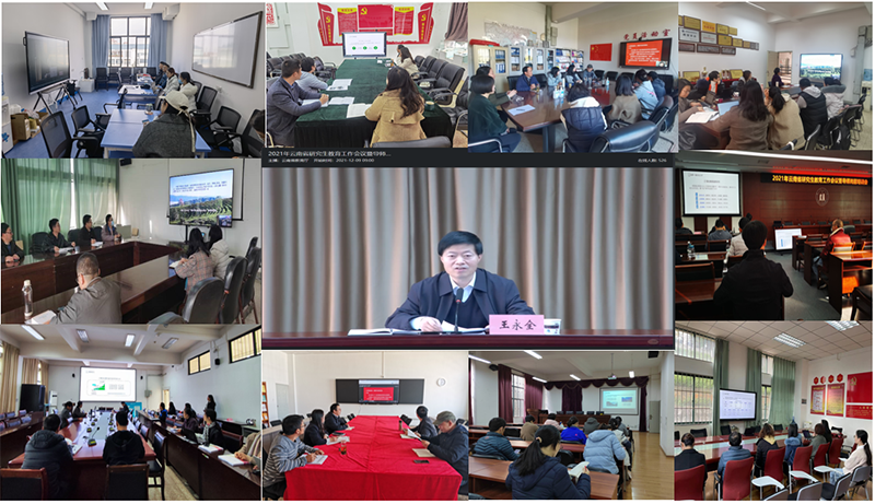 学校研究生学位授权点经济管理学院、教师教育学院、学前与特殊教育学院、人文学院、信息工程学院、农学与生命科学学院、医学院、旅游学院、数学学院、化学化工学院设分会场,以及校外导师分会场。学院党政负责人、2021年遴选校内外研究生导师和研究生部全体成员参加视频会议。