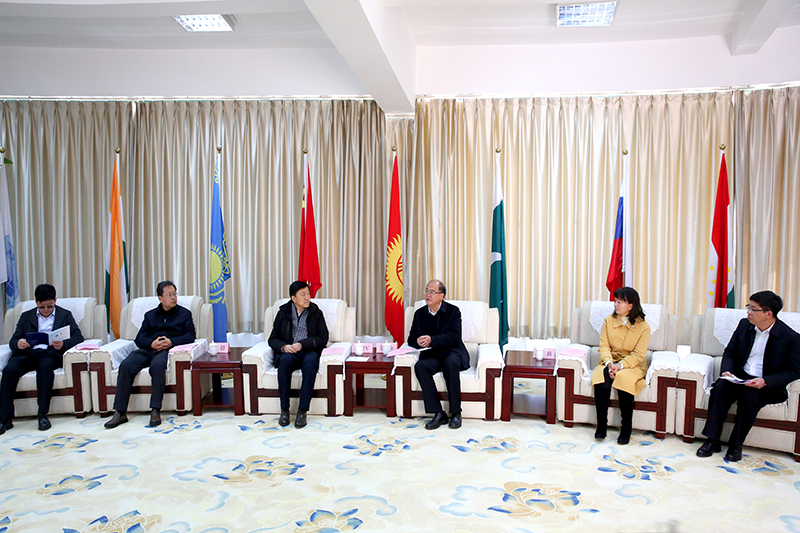 12月13日,青岛市委常委、胶州市委书记,中国-上海合作组织地方经贸合作示范区党工委书记、管委会主任刘建军一行在昆明市委常委、副市长孙群的陪同下,到德赢官网调研中国--上合组织青年交流中心工作。校党委书记金幼和,党委副书记李莉,党委委员、副校长李剀热情接待来宾一行。