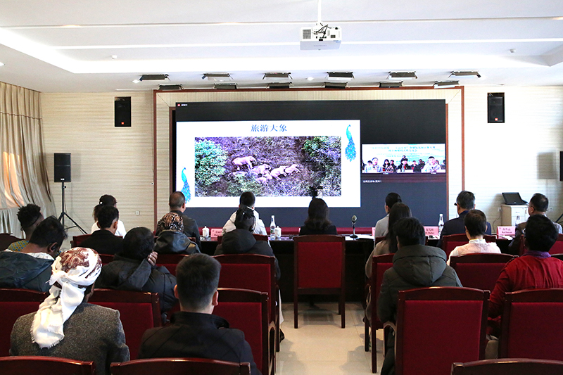 学校国际学院、国际交流合作处等部门相关负责人,以及在校留学生在学校分会场参加会议。