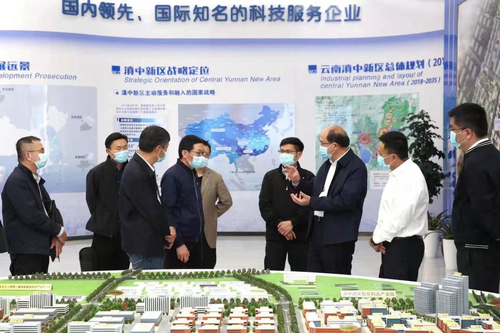 金幼和一行在云南滇中新区党工委委员、管委会副主任段宏波陪同下,走访考察了滇中新区规划展览馆、中关村电子城(昆明)科技产业园、云南中玮科技集团等企业园区,深入了解企业招聘人才及用工情况。