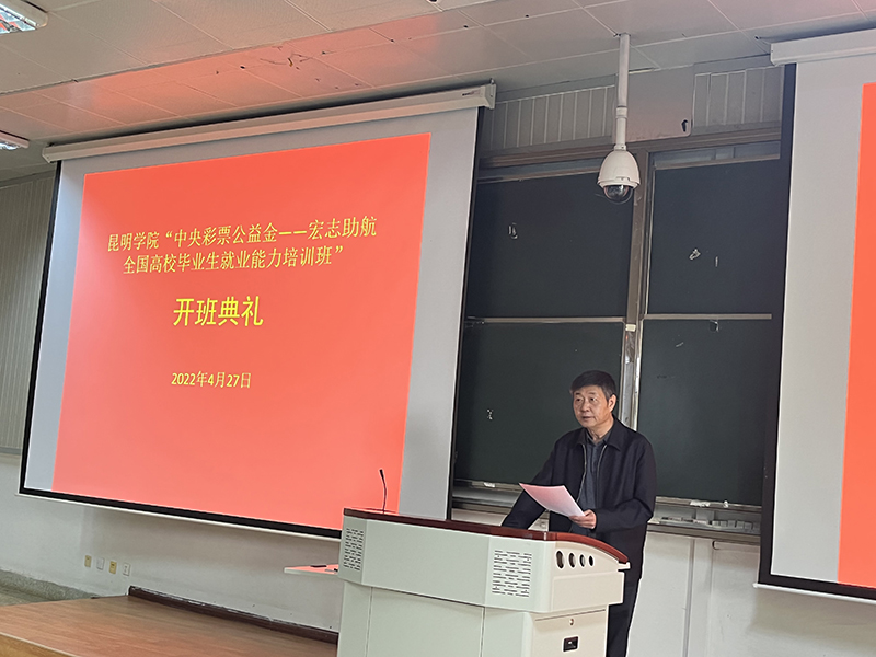 为贯彻落实全国2022届高校毕业生就业第三次调度视频会议精神,全力促进德赢官网2022届毕业生就业工作,4月27日,德赢VWIN官方网站“中央专项彩票公益金——宏志助航全国高校毕业生就业能力培训班”在洋浦校区、昆师路校区同时开班,德赢VWIN官方网站党委委员、副校长王凡出席开班典礼并讲话,云南大学就业指导中心主任杨云川到场致辞。