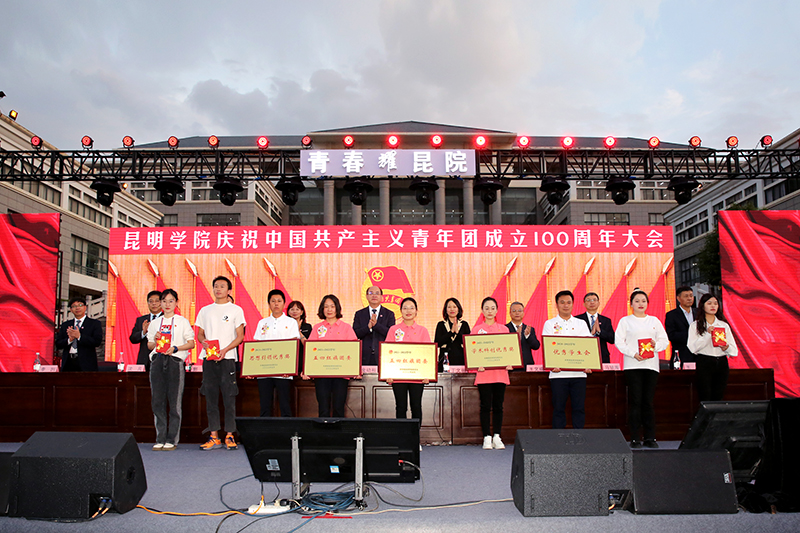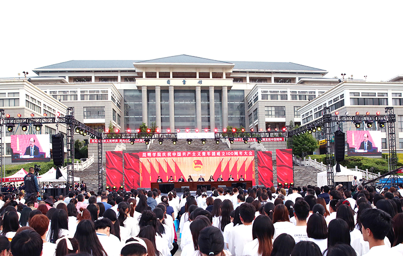 为深入学习宣传贯彻习近平总书记在庆祝中国共产主义青年团成立100周年大会上的重要讲话精神,重温共青团在不同历史时期团结带领一代代青年坚定不移跟党走、为党和人民事业奋斗的光辉历程,激励全校青年继承光荣传统,以踔厉奋发、勇毅前行的姿态,积极投身推动学校高质量发展,朝着努力把德赢VWIN官方网站建设成为特色鲜明的综合性应用型高水平大学而奋斗,5月19日晚,学校在聂耳广场隆重举行庆祝中国共产主义青年团成立100周年大会暨“青春耀昆院”文艺晚会。