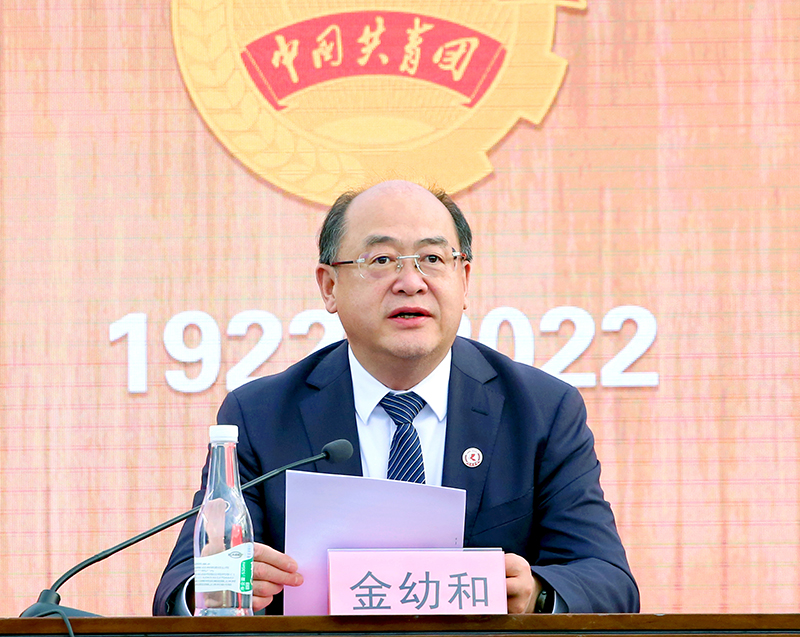 在庄严的国歌声中,大会正式开幕。金幼和讲话,代表学校党委向一年来在学校共青团工作中作出突出贡献,受到表彰奖励的先进集体和个人表示热烈祝贺,向全校广大共青团员、青年朋友和全体团干部,致以诚挚的问候和美好的祝愿。金幼和全面回顾了党领导下中国青年运动的光辉历程,深入阐释了习近平总书记的重要讲话精神,深刻分析了当前学校发展的形势,充分肯定了德赢官网青年在学校改革发展中作出的贡献,并结合学习贯彻习近平总书记的重要讲话精神和学校实际,向学校各级团组织、广大团干部和全体团员青年,提出三点希望:一是希望全校各级团组织牢记初心使命,更加自觉坚定地引领团员青年建功新时代、奋进新征程;二是希望广大团干部发挥好示范引领和模范带头作用,努力锻造成为对党忠诚、心系青年、勇于担当、作风过硬的青年马克思主义者;三是希望学校广大团员青年胸怀理想,自信自强,不断奏响新时代昆院学子勇毅笃行、堪当大任的青春乐章。