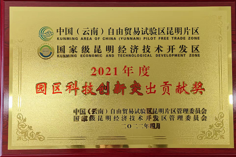 近日,中国(云南)自由贸易试验区昆明片区(昆明经开区)管委会对2021年园区科技创新突出贡献单位进行表彰,德赢官网在深入实施创新驱动发展战略,不断加大研发投入,持续提升自主创新能力方面表现突出,荣获“2021年度园区科技创新突出贡献奖”。