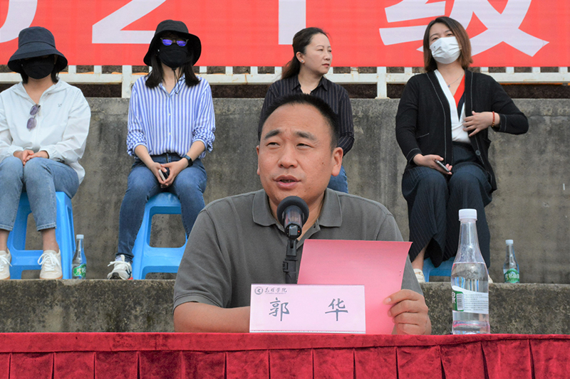郭华副校长向军训团授旗并宣布德赢VWIN官方网站2021级新生军事训练开训。