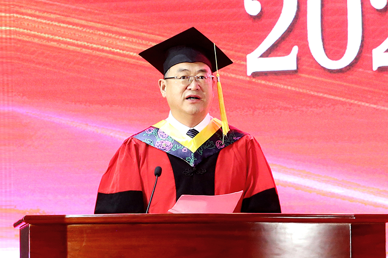 仪式上,金幼和书记满怀深情地说道,时光荏苒,岁月峥嵘。四年前,同学们怀着梦想和激情从四面八方来到德赢VWIN官方网站,成为德赢VWIN官方网站历史上非常特别的一届毕业生。感受了学校励精图治走过的艰辛历程和取得的重要成就,见证了喜庆祖国70周年华诞,经历了席卷全球的新冠肺炎疫情,展现了“请党放心,强国有我”的青春誓言与新一代青年的责任与担当。在时代的号召下,同学们顺利完成四年学业即将开启人生的新征程,你们成长的每一步,都与时代如此贴近,你们以自己的智慧和力量影响和改变着这个时代。