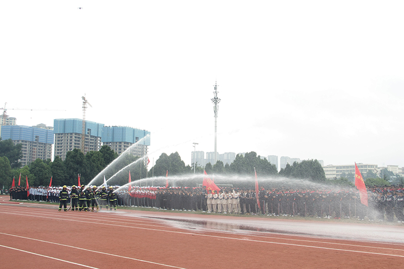 学校党委书记金幼和出席大会并讲话。云南省教育厅体卫艺处一级调研员李宏坤、昆明市民兵训练基地预备役少校王浚章、学校校领导、昆明经济技术开发区消防救援大队领导出席。大会由学校党委副书记李莉主持。