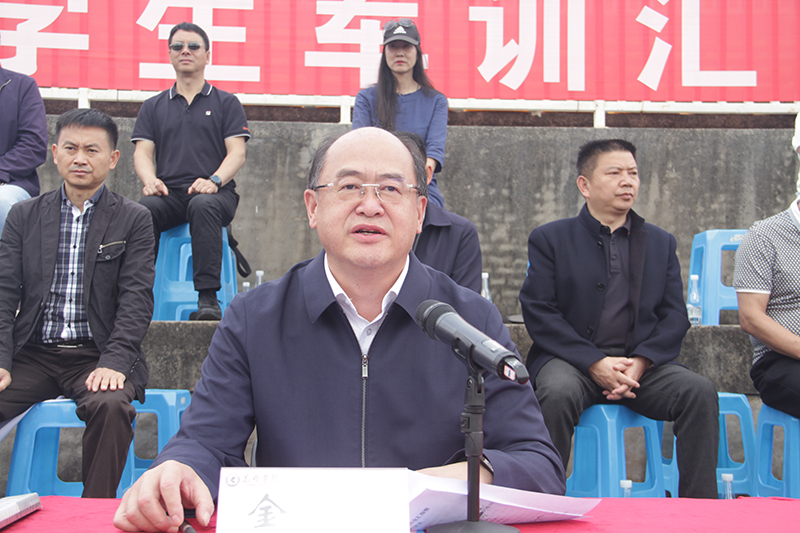 金幼和讲话指出,百年前的今天,在南湖的红船上孕育了伟大的中国共产党,八一的枪声缔造了党的人民军队,在“枪杆子里出政权”的真谛指引下,经过浴血奋战建立了新中国。在中国共产党的带领下,中国人民奋发图强,迎来了从站起来、富起来到强起来的伟大飞跃,正在向社会主义现代化强国迈进。他表示,时值伟大的中国共产党成立101周年,我们隆重举行升国旗仪式和军训结业汇报表演暨总结表彰大会,检阅成果,表彰先进,希望同学们把军训中所铸造的钢铁般的意志、脚踏实地的作风、铁的纪律、赤诚的爱国情内化成自己的品质,并融入今后的学习、生活、工作之中,始终秉承“听党指挥,能打胜仗”的优良传统,砥砺爱国精神,增强国防意识,以积极奋进的姿态担负起实现中华民族伟大复兴的时代重任;始终坚持“流血流汗不流泪,掉皮掉肉不掉队”的战斗作风,勇于开拓进取,用军人特有的品质和血性,走好自己的人生之路;始终践行“请党放心,强国有我”的庄严承诺,擦亮青春底色,努力学习、历练本领,自觉明理、勇于担当,创造属于自己的精彩人生。