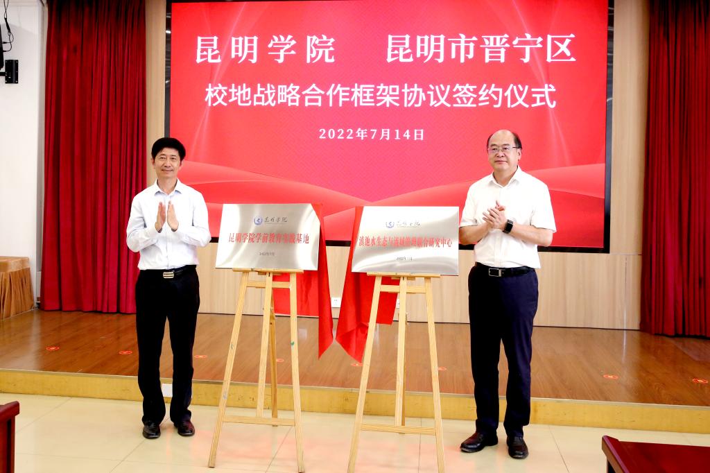 学校党委副书记王文成、副校长马银海,晋宁区人大常委会主任李绍荣、区政协主席吕丰参加签约仪式。