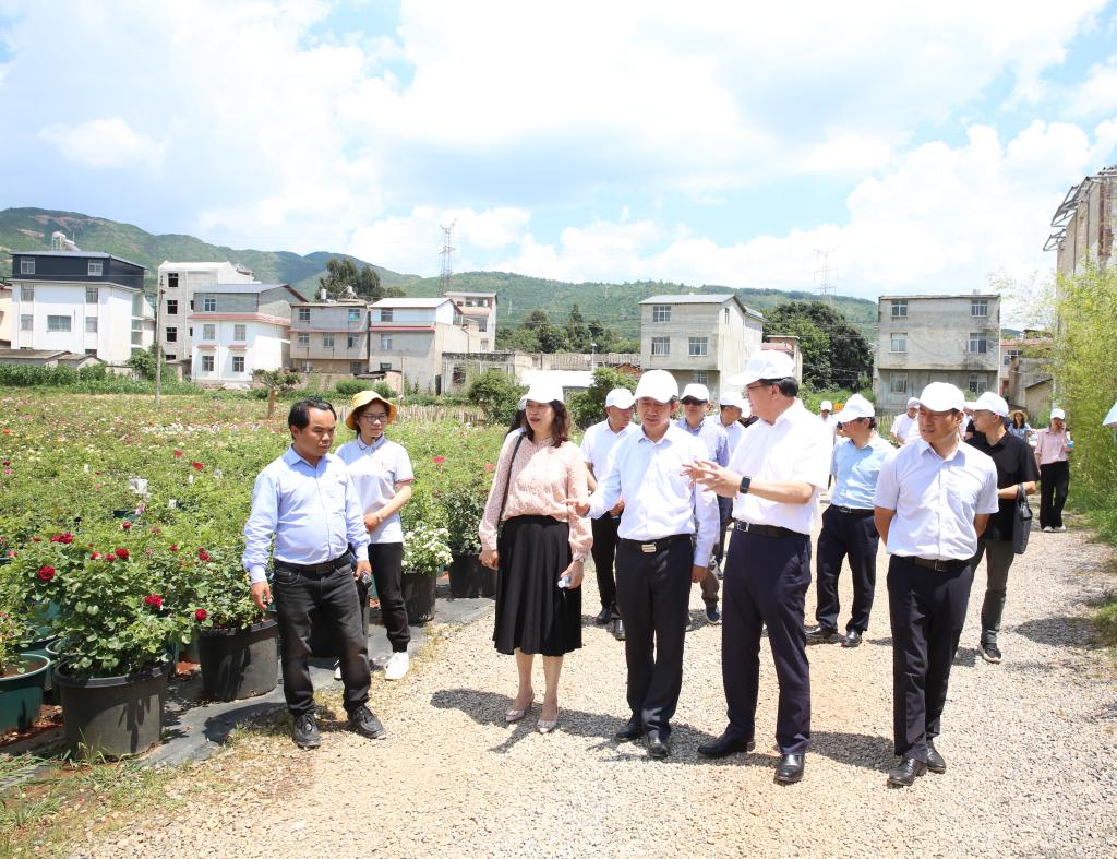 签约仪式前,金幼和、丁文丽一行实地调研了乡村振兴典型示范村上蒜小渔村、高端花卉企业云南艾蔷薇园艺科技有限公司、云天化晋宁花卉现代化示范园,参观晋宁区博物馆,详细了解晋宁区产业、历史、文化等相关情况。