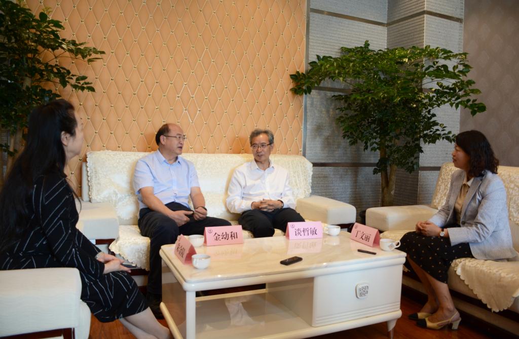 座谈会上,金幼和介绍了学校近期在人才培养、科学研究、队伍建设、合作办学、更名大学等方面的情况和学校在深挖红色校史资源,全力讲好“聂耳和国歌的故事”,打造红色育人品牌方面所做的工作以及在特色办学方面,按照“小而精、小而特、小而强”思路推进聂耳音乐学院建设发展的情况。随后,双方就加强科研合作、教育帮扶等方面工作交换了意见。谈哲敏院士对学校对口帮扶工作给予了肯定,表示今后双方要深化交流,进一步落实好帮扶政策,重点做好学科建设、科学研究、人才培养和队伍建设等方面帮扶工作,持续推进院士工作站及重点实验室项目合作研究,在重点合作项目上实现新突破,取得预期成效。