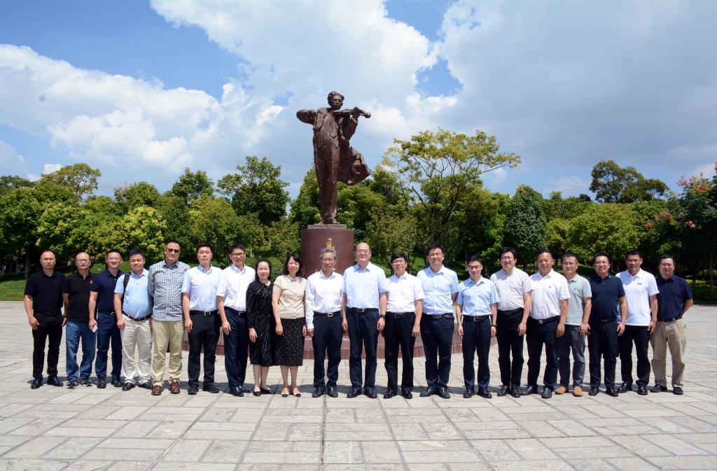 座谈会后,金幼和、丁文丽陪同谈哲敏院士一行参观了中国美术馆馆长、南京大学教授吴为山先生为德赢官网创作的聂耳塑像,并合影留念。