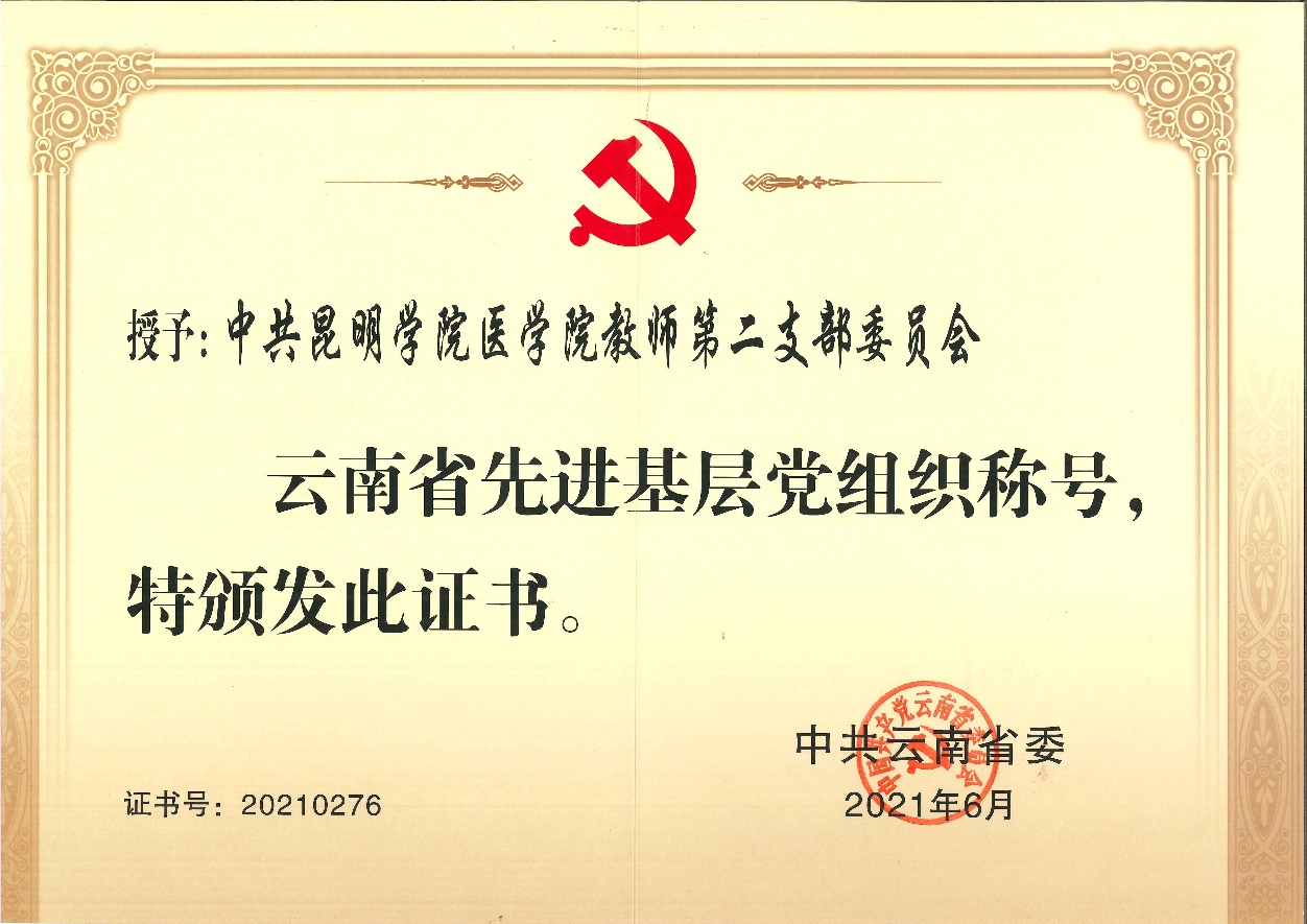 学院始终围绕新时代高校党建示范创建和质量创优工作,以党建工作示范党组织创建为抓手,全面提升基层党建工作水平。2020年9月,医学院党委被评为全省第二批高校“一流党建示范院(系)党组织”。医学院教师第二党支部先后被省委教育工委、省委组织部、教育部选树为“云南省高校规范化建设示范党支部”“云南省规范化建设示范党支部”“全国党建工作样板支部”。2021年,教师第二党支部被评为“云南省先进基层党组织”并受到省委表彰。以党建带团建,加强思想政治教育和学风建设,抓实学生工作,全心全意服务于学生的健康成长。学院团委(原团总支)连续多年被评为学校“五四”红旗团总支、红旗团委,学生会被评为优秀学生会。张雪梅老师和张芮宁同学两位党员获评为2022年德赢VWIN官方网站首届“最美昆院人”。