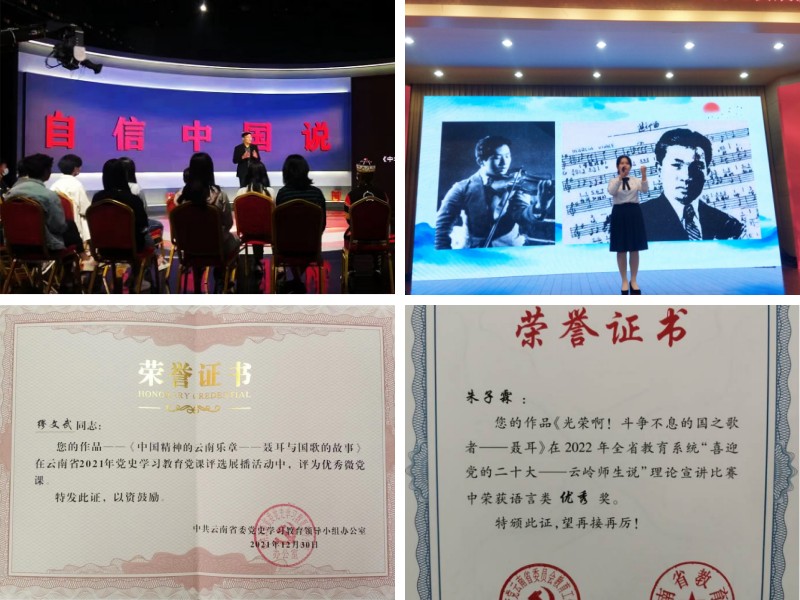 学院围绕学校改革发展大局和学院中心工作,充分发挥政治引领作用,把全面加强党的领导贯穿于立德树人全过程。一是深化理论学习,抓实理论研究阐释。充分利用党组织理论学习、周五学习、“学习强国”、“云岭先锋”、“周末大讲堂”各类学习平台,组织党员、干部开展学习教育,做到学习教育全覆盖,做到理论学习与教学工作相融合、相促进。发挥学科优势,深入研究阐释马克思主义中国化理论成果、习近平新时代中国特色社会主义思想,积极参与昆明市理论和政策咨询,努力发挥马克思主义学院在理论研究和解决现实问题中的智库作用,多篇决策咨询报告被地方政府采纳和转化为工作文件。二是加强党组织建设,抓强理论宣传教育。围绕“突出重点、凝练特色、创建品牌”的工作目标,严格落实支部规范化标准化建设,通过组织师生党员到扎西、嘉兴、遵义研学,不断增强党支部的凝聚力和战斗力。引导教师发挥专业优势,成立党的创新理论师生宣讲团,打造有影响力和感染力的理论宣传平台,深入机关、学校、企业、社区,广泛开展党的理论宣传和普及,不断推进新形势下马克思主义大众化。“习近平新时代中国特色社会主义思想学习园地”被省委宣传部、省委党史学习教育领导小组办公室评为“云岭百姓宣讲”示范点,多名教师被聘为省委教育工委、昆明市委和学校党委党史学习教育宣讲团成员。三是强化多元协同,抓实思政课一体化。在学校“ 四联动”工作“大格局”(思政课各课程间联动、传统教学与新媒体联动、思政课程与专业课程联动、马克思主义学院与职能部门联动)的指导下,实现课程思政与思政课程同向同行、日常思政工作与思政课程同频共振。学校与昆明市委宣传部共建马克思主义学院,建设”昆明市大中小学思政课一体化协同创新基地”;2022年9月,与长春小学、昆明市第二中学共同组织开展“讲好聂耳和国歌的故事、铸牢中华民族共同体意识”昆明市大中小学开学第一课活动。