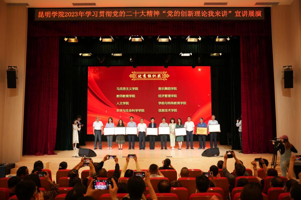 首先,学校党委副书记李莉讲话并宣布宣讲比赛获奖选手和优秀组织奖名单,校领导为获奖选手和单位颁奖。
