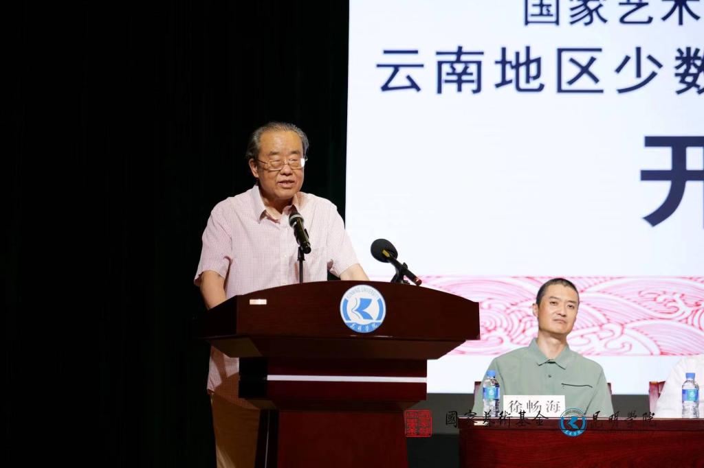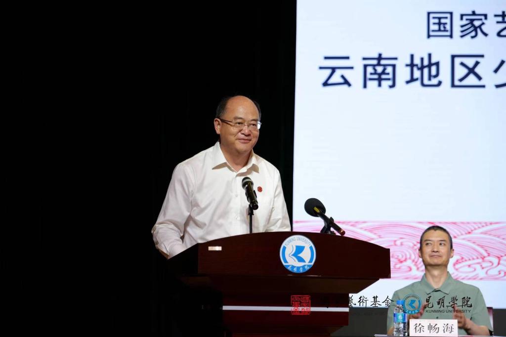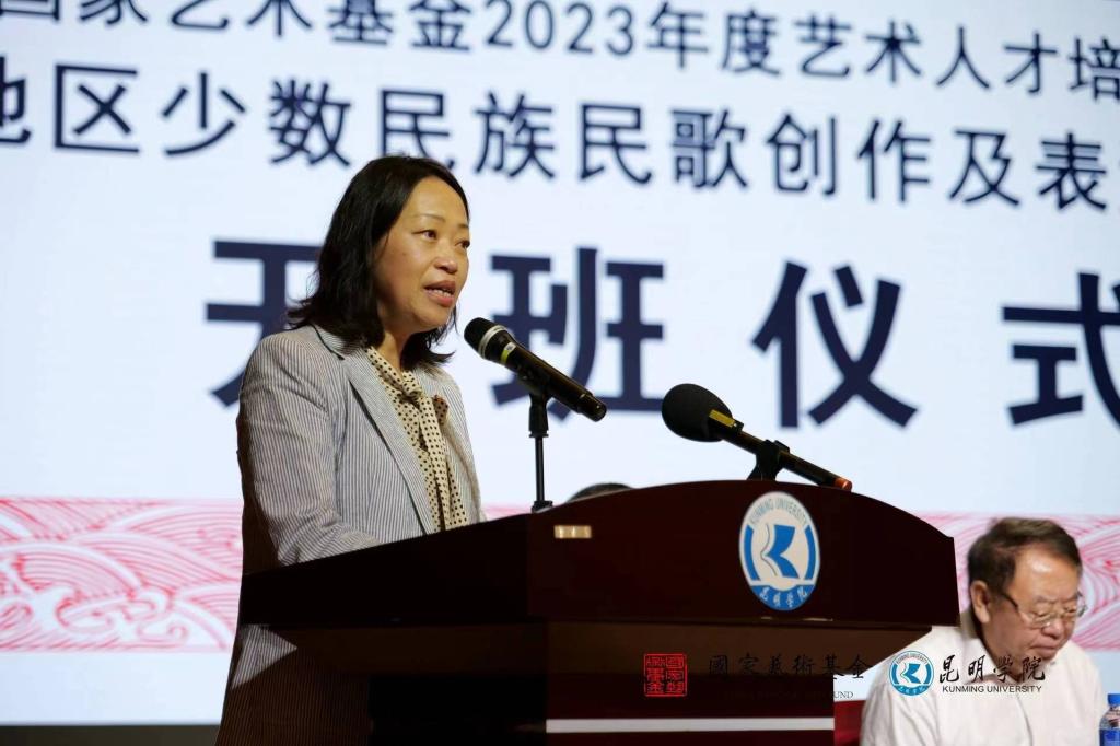 学校党委书记金幼和宣布“国家艺术基金2023年度艺术人才培养资助项目《云南地区少数民族民歌创作及表演人才培训》开班”。