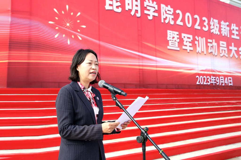 丁文丽校长致辞,代表德赢VWIN官方网站全体教职员工对新同学加入昆院大家庭表示真诚的祝贺和热烈的欢迎,并向同学们介绍了德赢VWIN官方网站办学历史、发展成就等,讲述杰出校友聂耳的成长经历和光荣事迹,寄语新同学要具备“硬实力+软实力”,秉持“明德至善,知行利物”的校训,将专业知识“硬实力”与综合素质“软实力”结合起来,学以致用,知行并进。要注重“规划+落实”,尽早发现自我,提高人生规划与决策能力,并脚踏实地为达成目标不懈努力。要涵养“外形+内质”,内外兼修,形质兼美,展现新时代昆院学子的魅力与风采!