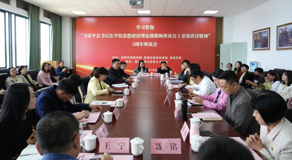 昆明市委宣传部副部长姚晓怡指出,2019年3月18日,习近平总书记主持召开了学校思想政治理论课教师座谈会并发表重要讲话。五年来,全市各级党委、政府、各级各类学校、思政课教师勇于担当、积极作为,不断深化思政课改革创新,使党的创新理论“三进”工作落地落实、思政课育人成效显著提升。思想政治理论课建设进行到深化发展的新阶段。要进一步强化党的领导、落实主体责任、丰富内容供给、推动改革创新、深化校地共建,共同推进全市大中小学思政课一体化建设。
