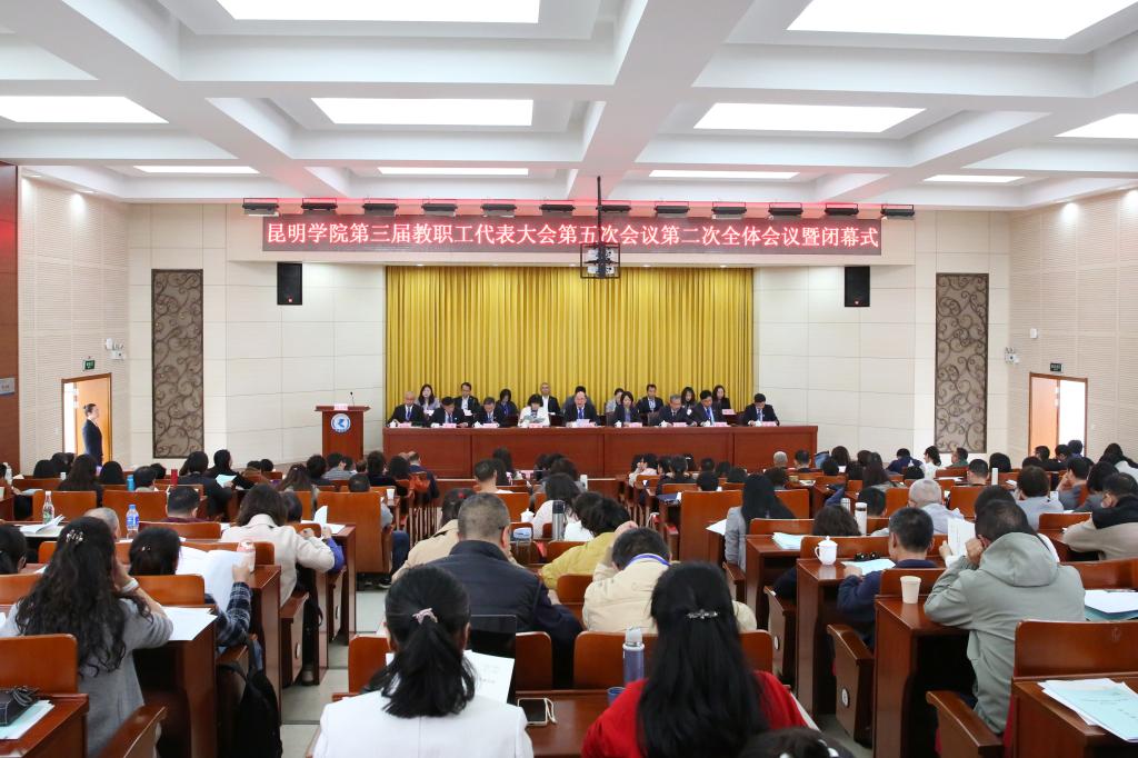 闭幕式上,金幼和讲话表示,学校第三届教职工代表大会第五次会议在大家的共同努力下圆满完成各项议程,会议期间,各位代表和与会同志以饱满的政治热情,强烈的使命担当,着眼于办好人民满意的教育,忠实履行职责,围绕学校高质量发展,积极建言献策,为建设特色鲜明的综合性、应用型高水平大学贡献智慧和力量。会议凝聚了共识,明确了任务,坚定了信心,是一次民主、团结、务实奋进的大会。