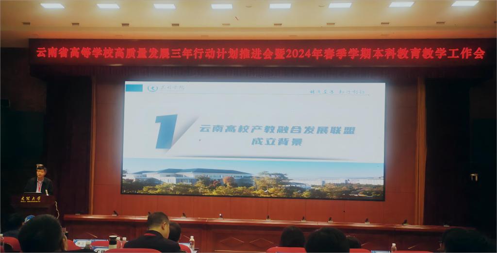 各高校围绕审核评估工作、“去D”工作进行了交流和汇报;教师教育联盟、课程思政联盟、非通用语人才培养教育联盟、新医科教育联盟、高校产教融合发展联盟、高校计算机教学研究会分别对2024年的工作计划进行了汇报。德赢VWIN官方网站作为云南省高校产教融合发展联盟理事长单位,由王凡副校长代表联盟对2024年的工作计划进行了汇报。