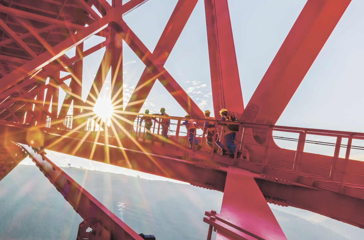 友谊隧道内工人正在焊接固定八字结格栅钢架(潘龙柱/摄)