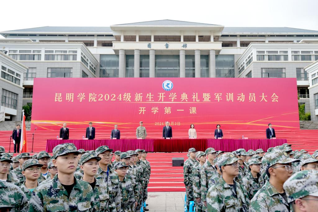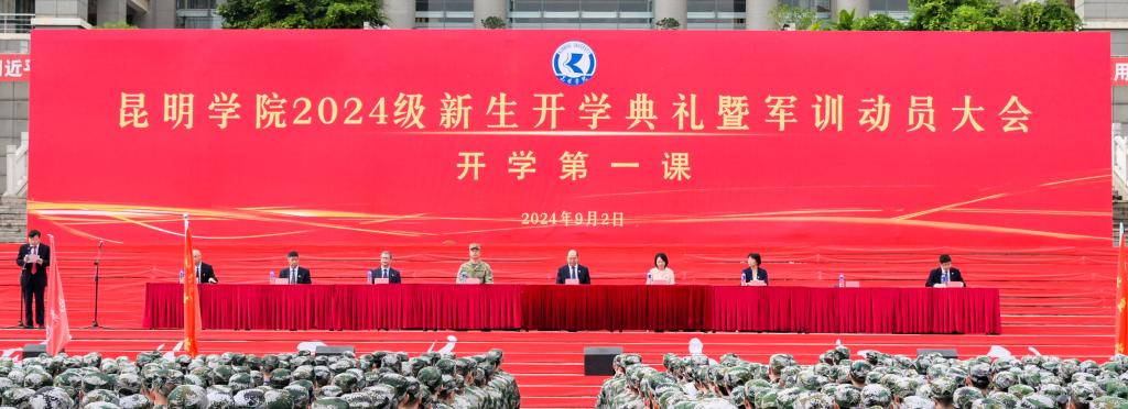学校党委书记金幼和,党委副书记、校长丁文丽,官渡区人民武装部副部长杨鹏,校领导李莉、王文成、彭志远、王凡、李剀、罗荣辉出席典礼。党委委员、副校长彭志远主持。学校各二级学院党政主要负责人、副书记,新生辅导员、班主任,职能部门负责人参加。