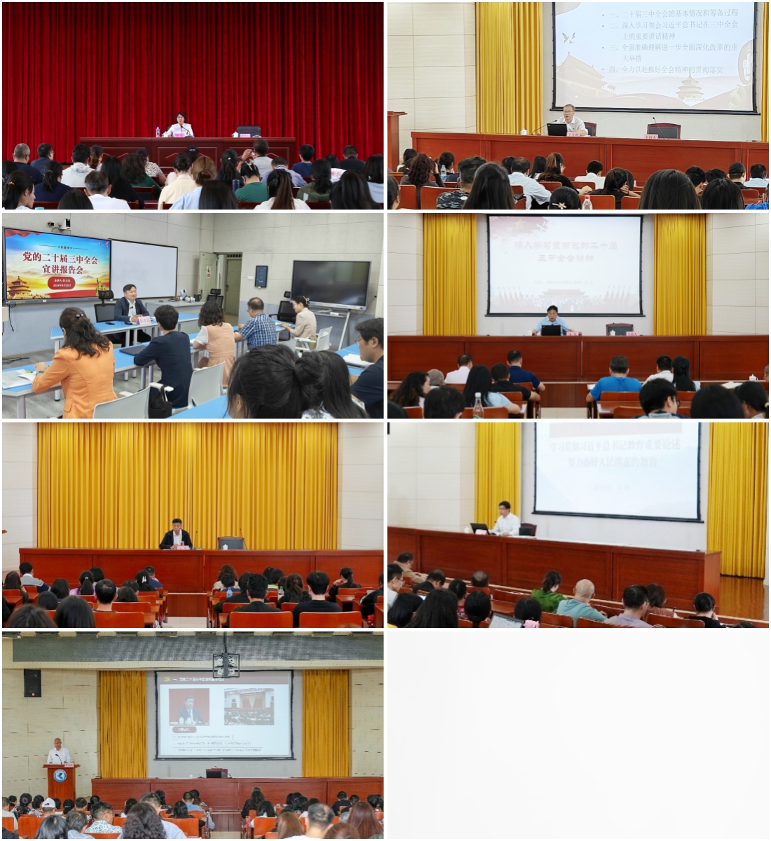 本学期开学伊始,学校全面开展党的二十届三中全会精神宣讲。学校校领导带头到联系单位和分管部门开展宣讲,覆盖了22个二级党组织和50多个单位部门,联系学院和分管部门的老师、学生聆听了报告,达到了宣讲全覆盖。