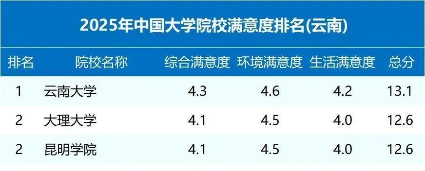 教育部阳光高考信息平台(gaokao.chsi.com.cn)发布“2025年中国大学院校满意度(云南省)”排名。德赢VWIN官方网站以总分12.6分的优异成绩,高居全省高校第二位。阳光高考网是由教育部高校学生司指定的高考招生信息发布网站,隶属国家智慧教育公共服务平台,这一排名基于全国高校历届毕业生的实名投票得出(涵盖生活条件、环境以及综合情况),是体现高校办学质量和学生体验的重要指标。