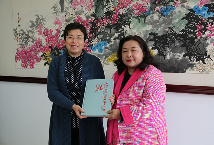 调研会上,段俐娟副局长代表省档案局向学校赠送《云南省档案馆馆藏名人手迹》。随后,省档案局一行领导到还德赢官网滇池博物馆进行参观调研。
