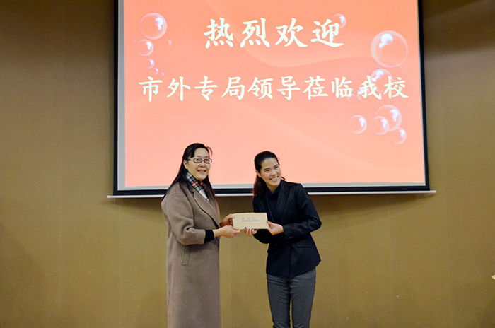 郭局长一行详细了解了外籍专家和教师在校的工作及生活情况,对其为德赢VWIN官方网站作出的贡献表示衷心感谢,并对2018年优秀泰国籍教师Bootmun Miss Pinpinat女士进行了表彰。同时对德赢VWIN官方网站目前留学生招生与就业、国外专家引智等情况进行了深入调研,表示昆明市政府历来重视外国人才工作,并指出要继续完善外国人才引进体制机制,对作出突出贡献的外国专家及教师代表给予进一步表彰与奖励,这为新时期德赢VWIN官方网站外专引智管理服务工作指明了方向。