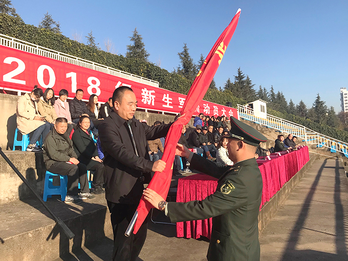 2019年1月7日上午,德赢官网2018级新生军训开训动员大会在田径运动场举行。学校副校长郭华出席大会并作开训动员讲话。学校党办、校办、宣传部、学生处、保卫处、团委、各院系等单位的负责人参加了动员大会。 郭华副校长指出,“军训”作为大学教育的第一课,是学校人才培养的重要环节,是塑造精神气质的有效载体,也是同学们人生旅途中又一个新起点。大学生军事训练的主要任务是训思想、训纪律、训作风、训精神,练技术,练体力,练意志,练品质,这既是学习的过程,也是历练的过程,更是拼搏的过程。并强调,为保证本次军训有序推进,取得实效,学校将严格按照《中华人民共和国国防教育法》、《兵役法》等相关法律法规要求,集中开展为期13天的军事理论课和军事技能训练课学习,内容涉及国防知识、军事理论,队列训练、擒敌战术,战伤救护、内务卫生等训练科目。时间紧,任务重,强度大,挑战多,是对每一位参训同学的全方位考验,军事训练既发挥着锻炼身体素质,磨练意志品格的良好作用,更是同学们今后良好的生活和学习习惯的养成基础。 郭华副校长强调,军训是学习,军训是磨练,军训是收获,军训更是考验。同学们要上好军训这堂课,习得良好的集体协作精神,把小我融入到大我之中,在青春的征途上不断奋斗启航;要虚心求教,勤学苦练;要服从指挥,令行禁止;要团结协作、保障安全。 郭华副校长向军训团授旗并宣布德赢VWIN官方网站2018级新生军事训练开训。