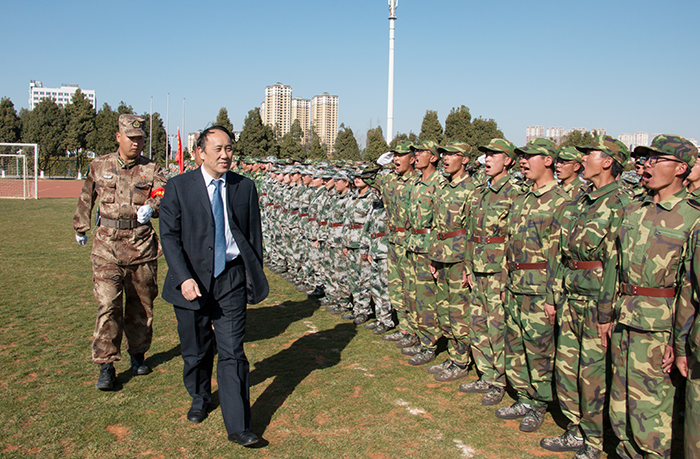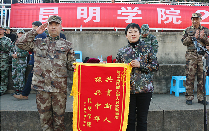 1月17日,德赢官网在田径运动场举行2018级学生军训汇报表演暨总结表彰大会。省教育厅体卫艺术调研员李宏坤,云南省学生体育协会、学校国防教育专业委员会主任毛智贤,学校党委书记陈永明,校长黎素梅,党委副书记熊晶,副校长郭华、董建华、沈凡、马银海、王凡等领导出席大会。大会由郭华副校长主持。 军训汇报表演在庄严的国歌声中拉开序幕。学校2018级4900余名参训同学在承训教官的精心指导下,以“坚韧不拔、毫不松懈、永不服输”的精神,顶烈日、冒风雨,克服重重困难,圆满完成军训任务。今天,他们斗志昂扬,整装待发,时刻准备接受领导的检阅。 陈永明书记检阅军训方队。在激昂的阅兵进行曲中,陈永明书记依次检阅受训方队,同学们意气风发,精神饱满,“老师好!”“好好学习,为校争光!”的口号清晰嘹亮,响彻学校上空。在分列式进行曲中,标兵就位,分列式开始,来自各院系方阵代表的同学们士气高昂,以整齐的步伐、宏亮的口号、严整的军姿向主席台前进,气势恢宏,将14天的军训成果展现得淋漓尽致。 分列式完毕,军事训练科目汇报表演正式开始。首先登场的军歌合唱队列唱响了《我是一个兵》、《当那一天来临》、《强军战歌》,用嘹亮军歌唱出了军训的热情,唱出了拼搏与坚持。由144人组成的女子匕首操队列动作精炼,整齐划一,场上“杀”声不断,声音嘹亮,气势如虹。拳术队列表演了军队的传统拳术捕俘拳,精神抖擞,充分展示了正道学子的风采。跪羊图列队结合中国传统经典,演绎感恩歌曲《跪羊图》,以弘扬传统道德为目标,使人深受感动。反恐战术队列以基础动作展示和战场模拟形式将汇报表演推向高潮,以专业的动作展示出他们的拼搏精神。花样队列身着迷彩,手拿红黄啦啦操花球,用队形变换出校徽、党徽、“中国”等样式,整个画面整齐流畅,赢得阵阵掌声。 汇报表演结束后,熊晶副书记宣读了《关于表彰德赢VWIN官方网站关于2017级学生军训优秀集体,优秀个人的决定》。与会领导为内务优秀宿舍、军训优秀学员、优秀带队教官代表、优秀辅导员颁奖。美术与艺术设计学院2018级杨诗玉同学作为军训优秀学员代表发言。 黎素梅校长作总结讲话指出,进行军事训练是党中央、国务院、教育部做出的具有战略意义的决定,是全面提高大学生素质,培养社会主义建设者和接班人的必修课,希望同学们要肩负国家使命,培养国家意识,做到内外兼修,真正成为中国特色社会主义的合格建设者和可靠接班人;希望同学们继续发扬脚踏实地、百折不挠、永不服输的精神,努力践行社会主义核心价值观;希望同学们学会坚持,发挥不屈服、不放弃的精神,不怕失败,从成长中享受成长的快乐。 会上,黎素梅校长为承训单位赠送锦旗。