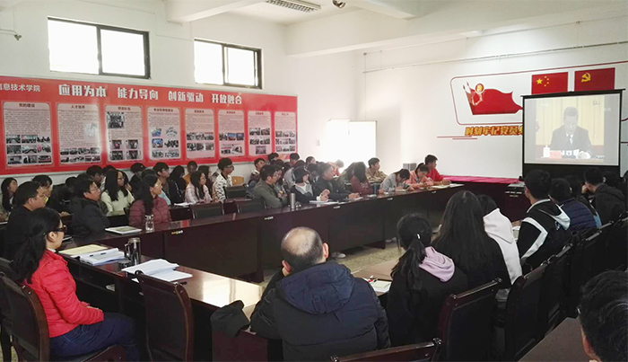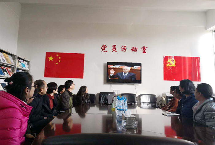 学校在校校领导、机关中层干部和学生干部代表在办公楼502会议室集中收看大会实况直播,学校各学院、各单位组织师生员工在会议室、办公室、教室等地收听收看直播,并及时开展讨论。