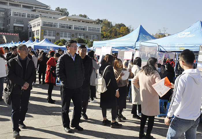 12月21日,云南省2019届综合类高校毕业生双向选择洽谈会在德赢官网成功举行。省委高校工委副书记陈世波,学校党委书记陈永明、副校长郭华,云南省大中专毕业生就业服务中心主任周舟及昆明市就业服务局、昆明市人才服务中心领导深入招聘会现场了解情况、指导工作。 本次招聘会由云南省教育厅主办,德赢VWIN官方网站、红河学院、文山学院、云南省大中专毕业生就业服务中心共同承办。旨在积极拓宽我省毕业生就业创业渠道,努力搭建规范安全的就业平台,实现我省高校毕业生更高质量和更充分就业。 学校本着“控制规模、提升质量”的工作原则,充分利用政府、行业资源,积极开拓毕业生就业市场,各院(系)通过“走出去、请进来”等形式,主动邀请用人单位参加本次招聘会。根据德赢官网2019届毕业生专业特点和求职需求,最终遴选出包括云南云内动力集团有限公司、昆明南疆制药有限公司、中国光大银行股份有限公司昆明分行、沈机集团昆明机床股份有限公司、昆明洲际酒店、昆明市第一人民医院、昆明市卫生学校等400多家企业参会(其中省外参会单位89家),提供就业岗位近16000多个,招聘会现场分为各区政府提供的就业单位、机电建筑、经济管理、旅游管理、文教卫生、农林渔牧等多个专区,方便毕业生根据自己所学专业选择对口企业应聘。 招聘会现场秩序井然、气氛热烈。现场宣传展板醒目的宣传党的十九大报告提出的就业方针政策和国家促进2019届毕业生一系列政策、措施。招聘现场来自省外高校17所、省内高校20所近4000名毕业生积极主动投递求职材料,踊跃与应聘单位交流洽谈,各院(系)领导、辅导员、班主任现场指导毕业生就业,帮助毕业生及时解决应聘过程中出现的问题。据统计,毕业生现场投档数2367份,基本达成就业协议数629人。学校将进一步推进就业工作,继续为2019届毕业生就业提供优质指导、优质帮扶、优质信息和举办一系列专场招聘会等多项服务,同时希望广大毕业生树立信心,主动就业,为顺利走好人生职场的第一步做好充分的准备。