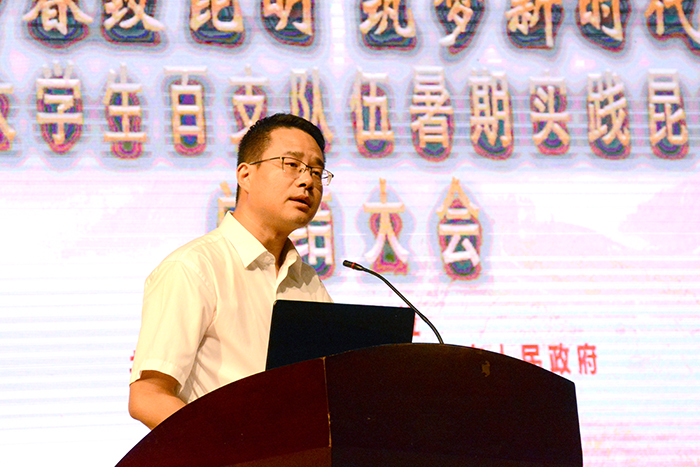 8月16日上午,“青春致昆明 筑梦新时代”全国大学生百支队伍暑期实践昆明行活动总结大会在德赢官网隆重举行。此次实践活动以“青春致昆明 筑梦新时代”为主题,100支队伍,近600人参与实践活动,打造“红色记忆”、“活力昆明”、“文化昆明”、“脱贫攻坚”、“绿色发展”5个实践主题,取得良好的示范引领效果。昆明市委常委、副市长胡宝国,德赢官网党委副书记张祖武,共青团云南省委副书记魏妮娅,云南省文化厅机关纪委书记张劼,共青团昆明市委书记郝国栋,云南省人力资源社会保障厅就业促进处副处长马责及来昆参加活动的百支大学生实践团队师生参加了总结大会。
