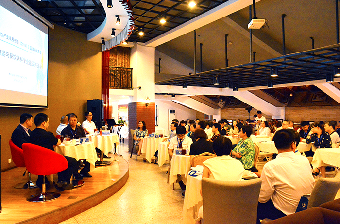 旅游学院院长田芙蓉教授在酒水实验室主持题为“烹饪本科教育的‘四个回归’人才培养质量提升”行业专家圆桌论坛。
