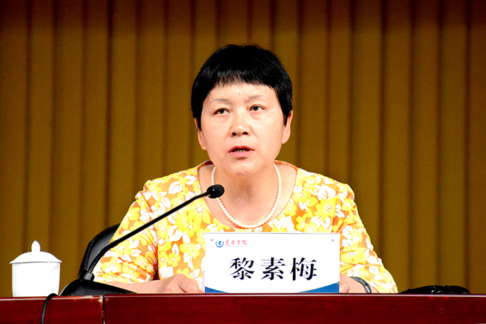 为进一步推进德赢官网2018年本科教学审核评估各项工作,把“以评促建、以评促改、以评促管、评建结合、重在建设”方针落到实处,使全校教职工的思想进一步统一到审核评估这项中心工作上来, 7月6日,学校在学生会堂召开推进审核评估工作全体教职工大会。党委书记陈永明,校长黎素梅,党委副书记张祖武,副校长熊晶、董建华、马银海、沈凡,全体教职员工参加会议。