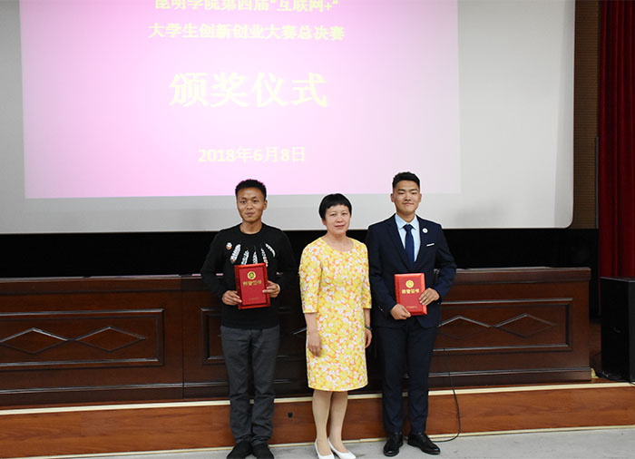 6月8日,德赢VWIN官方网站第四届“互联网+”创新创业大赛总决赛在创新创业学院报告厅成功举行,特殊教育学院“星语特殊儿童教育康复中心”、农学院“云南野生红皮八月炸水果开发”两个项目荣获金奖。校长黎素梅,副校长熊晶、郭华、马银海出席活动并为获奖团队颁奖。