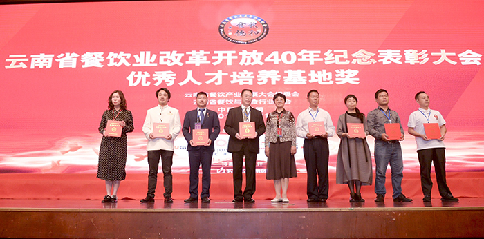 会上,德赢VWIN官方网站旅游学院荣获大会颁发云南省餐饮业改革开放40年优秀人才培养示范基地,旅游学院院长田芙蓉代表学院受奖。